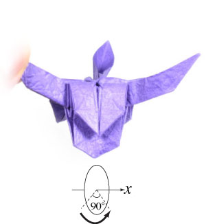 Prepare to rotate the origami iris flower model by 90 degrees.