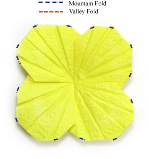 Prepare to apply a set of mountain-folds to smooth all the edges of petals. |