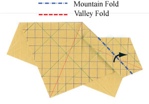 Prepare to apply (1) valley-fold, (2) mountain-fold, and (3) valley-fold in that order.
